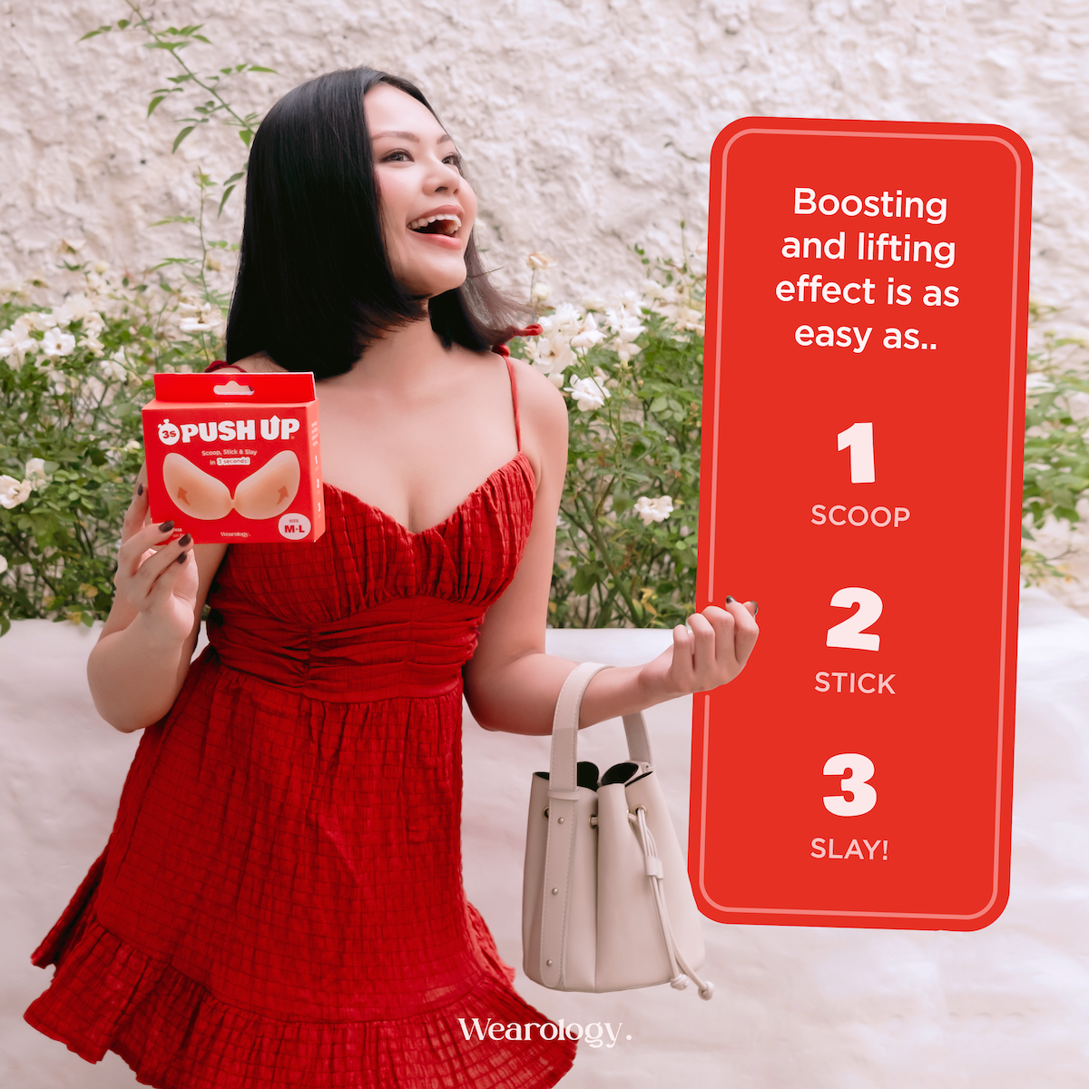 2. STICK bra from one side to another, centering the boobs to create cleavage.