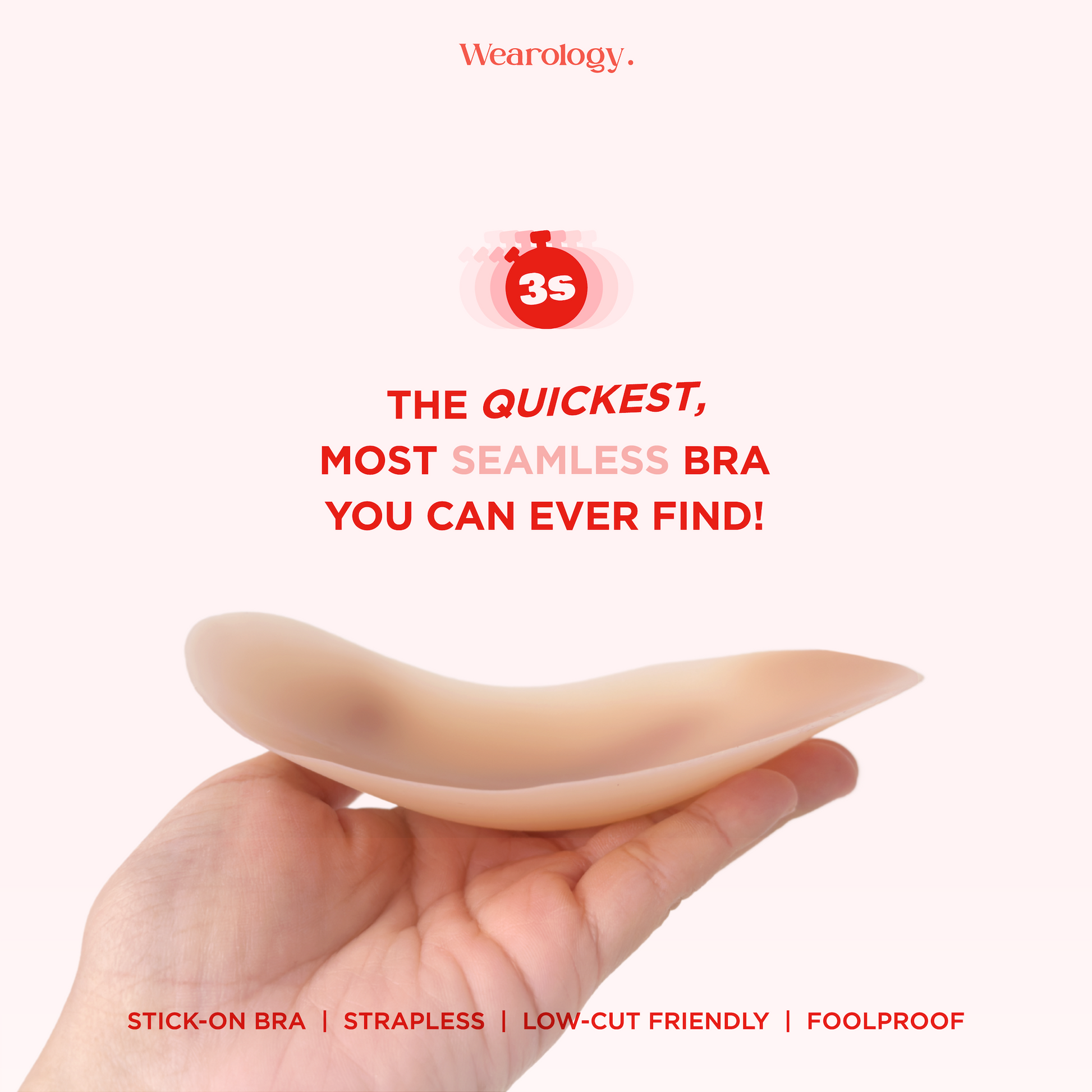 Stick-on. Strapless. Slight padding. Low cut friendly. Fool-proof.