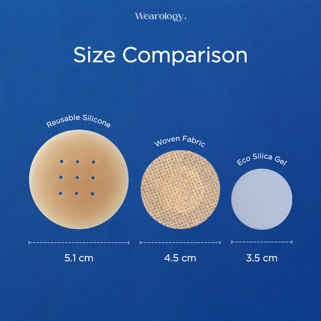 Nipple covers for men in the form of thin stickers made from Reusable Silicone / Eco Silica Gel / Woven Fabric and premium adhesive materials: